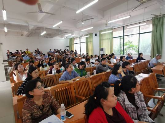 讲评专家为杨洛新教授,黄浠蕲老师在课堂上能与学生及时交流,观察学生反应,课件清晰美观又生动,信息量充足,有设立模拟教学提问的方式。同时,教授给予其相关建议:希望其能加强板书,运用逻辑思维将知识内容串联起来,讲述内容时能更加凸显重点。