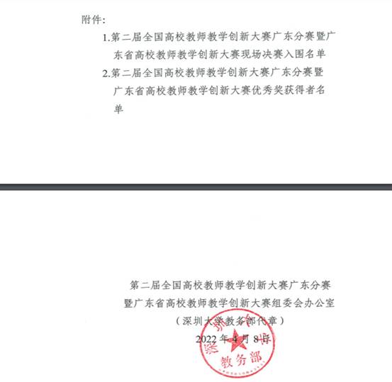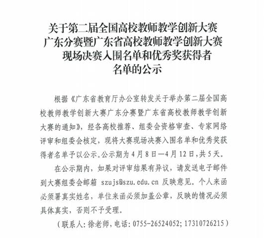 第二届全国高校教师教学创新大赛广东分赛暨广东省高校教师教学创新大赛县城现场决赛入围名单