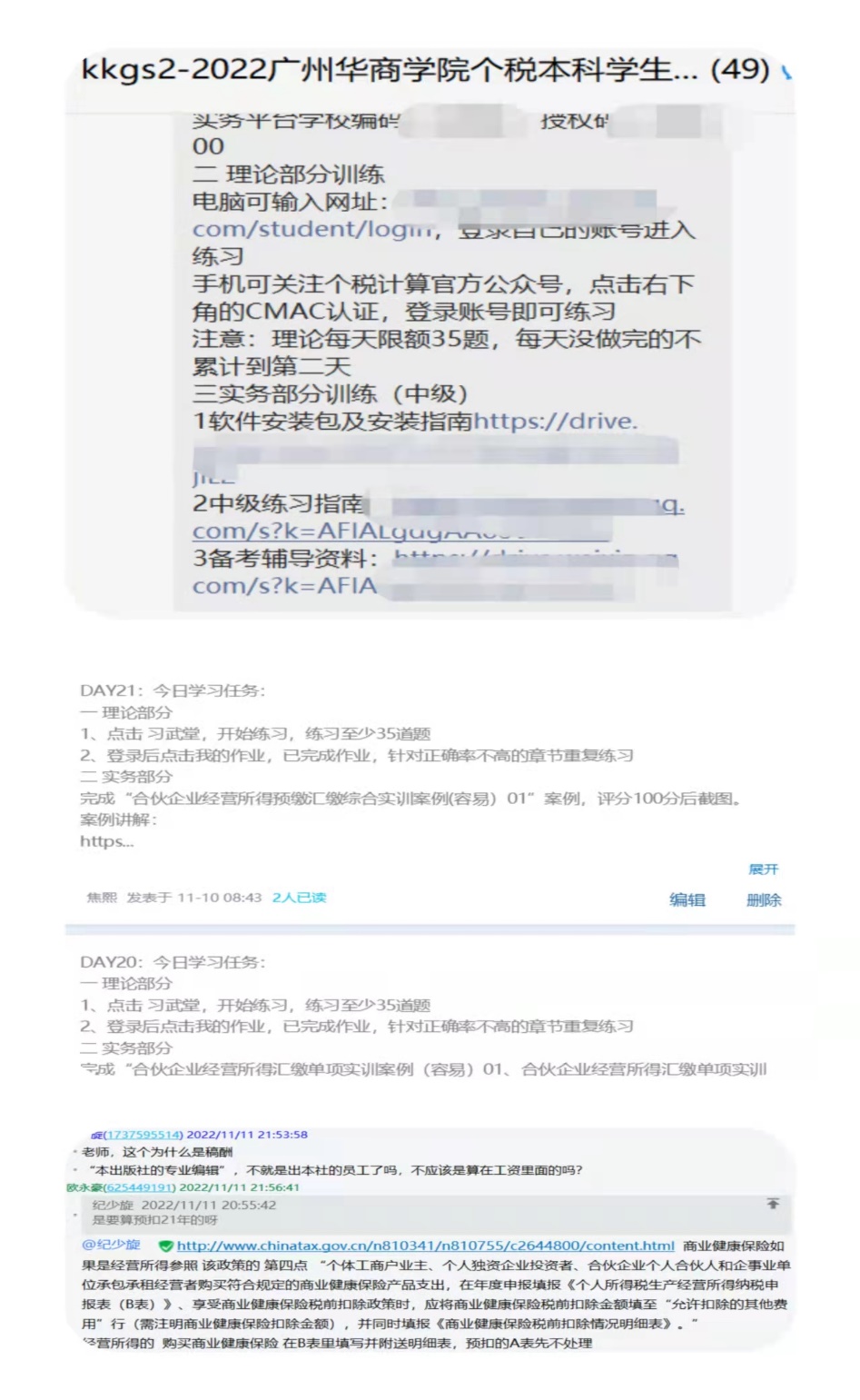 作为教育部“1+X”个税计算职业技能等级证书试点院校,为顺利完成此次个税计算职业技能等级证书(中级)考试,学院成立考试领导小组,精心组织培训与考务工作。考前培训由焦熙、丘晓琳玲、欧永豪三位老师负责,培训形式为“线上+线下”相结合的形式。老师组织同学们进行每日的习题演练,并在线上进行答疑。于10月25日组织线下培训,11月5日进行模拟考试。培训内容包括自然人税收管理扣缴端申报实训、经营所得预缴单项实训、个人所得税汇算清缴集中申报实训等模块。
