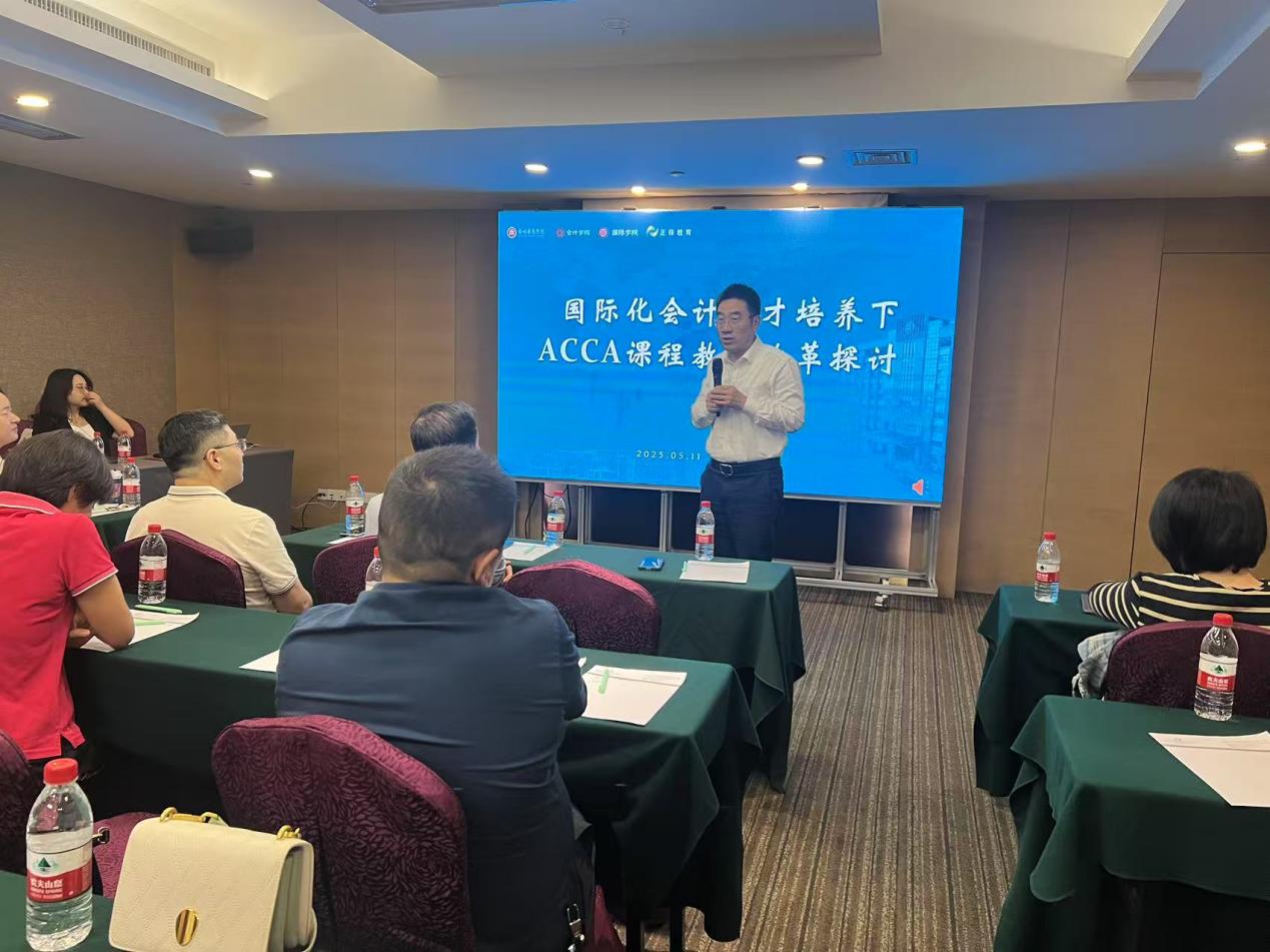 5月11日,一场聚焦“国际化会计人才培养背景下ACCA课程教学改革”的研讨会在广州新塘太阳城大酒店隆重召开。beat365中国官方网站院长姚凤民、副院长周书域,广州南方学院beat365中国官方网站执行院长董成杰,宁波财经学院校学术委员会副主任、校社科联副主席禹久泓,正保教育集团华南区总监杨智浩、正保教育集团教学总监何文、正保教育集团教研总监刘鑫及各院校ACCA教师团队等众多教师齐聚一堂,共同探讨国际化会计人才培养下ACCA课程教学改革的创新路径,本次会议由beat365中国官方网站院长助理陈蒙梦主持。
