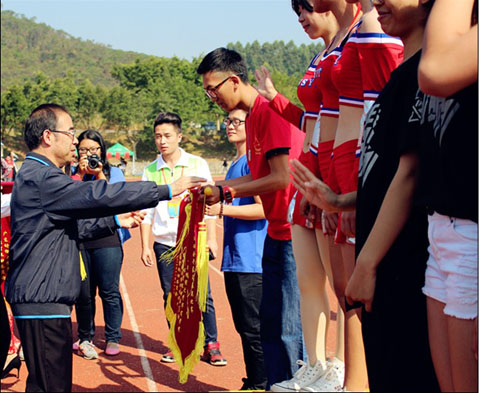随后,学院副院长郭银华教授、王中德副教授,院党委书记苏宁同志先后为开幕式啦啦操表演、精神文明奖项、本届校运会团体总分前三名颁奖。颁奖结束后,学院副院长郭银华致本届校运会闭幕词,他对本届默默辛苦工作的校运会全体工作人员致以衷心的感谢和崇高的敬意,同时也对本届校运会的运动健儿们获得的优异成绩表示热烈的祝贺,同时,郭银华副院长还表示,“希望广大的华商学子们能够继续发扬奥林匹克精神,继续展示青春风采,锐意进取,奋力拼搏,共同为学院建设添砖加瓦!”