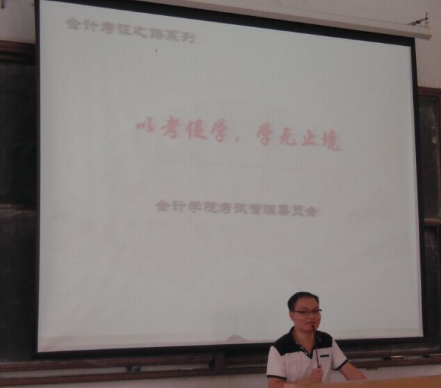 下午两点半,讲座正式开始。毛佳老师首先阐述了beat365中国官方网站考试管理委员成立的宗旨和主要职责:其一是对参加会计类证书的考试的学生进行指导;其二,组织学生考试报名,最后是,考前培训。