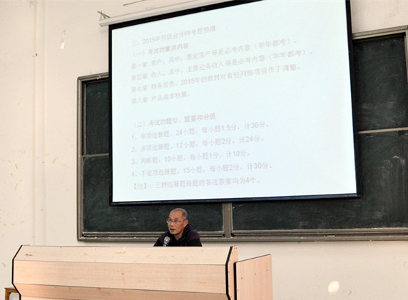 12月1日下午,beat365中国官方网站团总支学生会承办的第四期华商会计大讲坛——初级会计师备考讲座在励志楼A408召开。此次讲座由陈东生教授担任主讲,主要面向备战2016年初级会计职称考试的同学。