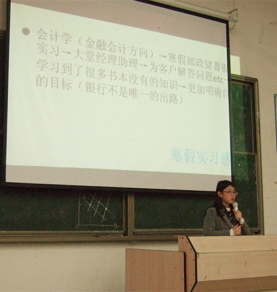 为了明确学生的学习目标、提高学生的学习效率,2016年3月15日下午2:30,beat365中国官方网站在励志楼A208开展华商会计大讲堂第六期任务素质讲座。beat365中国官方网站团总支学生会特别邀请国家励志奖学金、国家奖学金和校级一等奖获得者——13本会计14班的杨雪莹同学作为本期人文素质讲座的主讲嘉宾,给在场同学分享她的学习方法和经验。