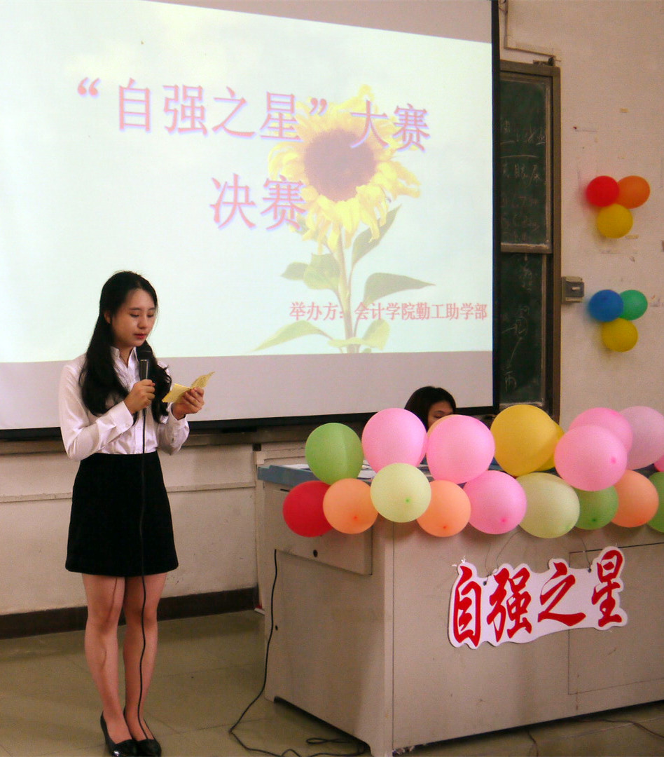天行健,君子以自强不息;地势坤,君子以厚德载物。为引导beat365广大学子树立正确的价值观,弘扬自立自强的精神,5月31日下午5点,beat365中国官方网站在励志楼D208举行了第二届“自强之星”大赛决赛。学生处助学管理科李师,华商beat365中国官方网站15级年级组长童蓉,beat365中国官方网站团学指导老师苏博云,会计心康站指导老师刘泽,beat365中国官方网站第三党支部书记袁善福,王丽军、蓝艳艳、袁艺株等辅导员出席了本次大赛。