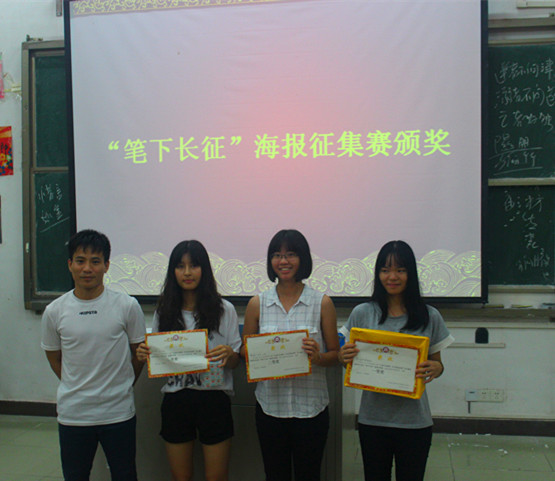 紧接着,团总支书记梁银雄对“笔下长征”海报征集赛中表现突出的前三支队伍进行颁奖。16本会15班的“漂泊的顺德人”获得一等奖,16本金工20班的“海报小分队”获得二等奖,16本财管3班的“五月花公子”获得三等奖。获奖队伍分别讲解了海报构思,同时阐述了他们对于长征精神的认知和理解以及继承先辈们长征精神之决心。