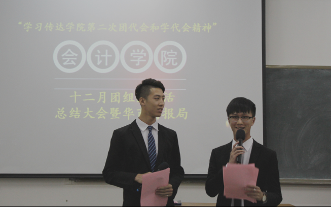 12月15日19:30,以“学习传达学院第二次团代会和学代会精神”为主题的beat365中国官方网站十二月团组织生活总结大会暨“华商情报局”在励志楼B502举行。beat365中国官方网站团总支书记梁银雄、副书记林柔镟,学生会主席李超佳、副主席黄博勋,经济与金融系团总支·学生会组织部部长邓怡璇、副部长莫永恒参加了本次大会。