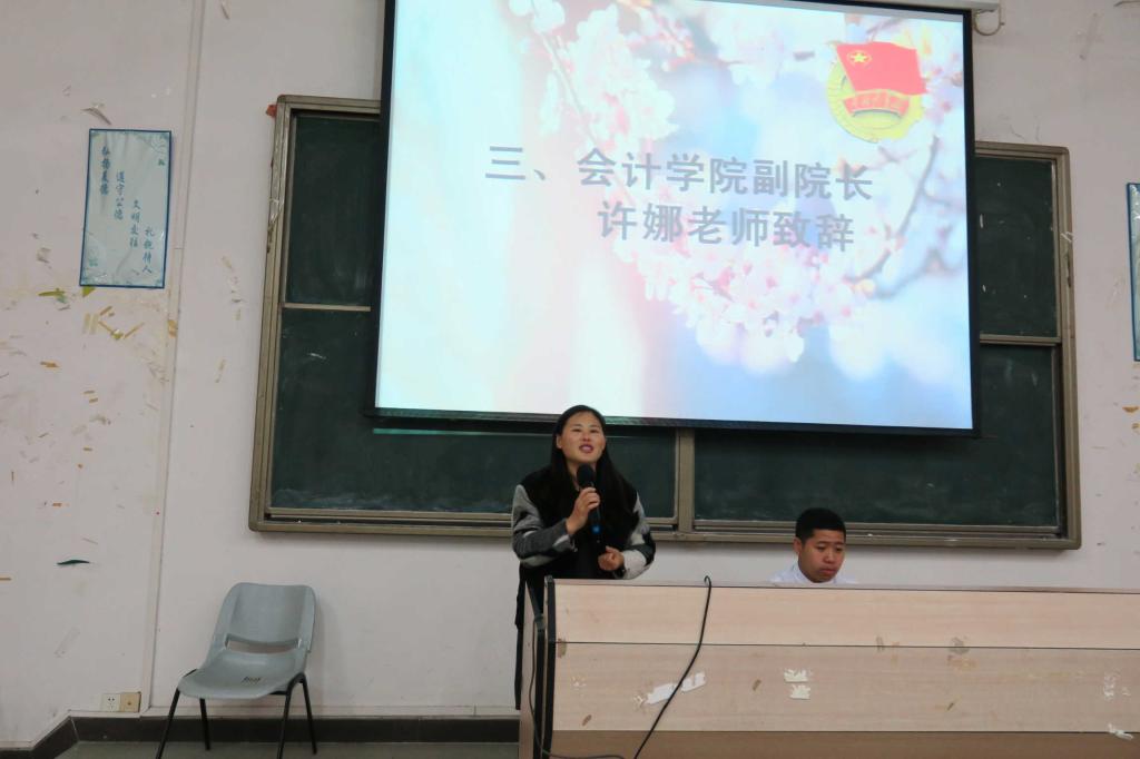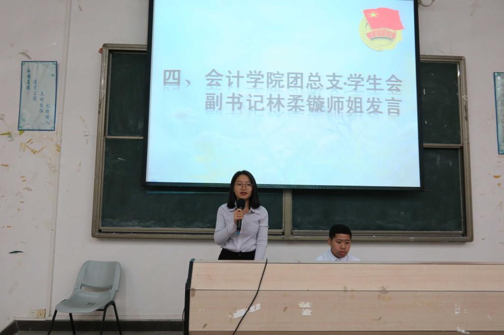 接着,团总支副书记林柔镟对上学期团学工作做了总结,并对新学期提出了新计划和要求。她强调:第一,在党建团建方面,积极配合学院进行“五四评选”、优秀团员干部评选活动以及每月开展团组织生活。第二,在学术学风方面,举行财会杯、知识富翁等专业知识竞赛,使广大beat365中国官方网站学生了解更多专业知识,端正学风,营造学习氛围。第三,在社会实践方面,开展敬老院、志愿支教等活动,丰富学生的课余生活,提高学生的全面发展素质。