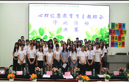 为了普及心理健康知识,增强学生心理素质,2018年5月22日18:20,由华商beat365中国官方网站学生心理健康站主办的心理健康教育月主题班会评比活动决赛在励志楼B207拉开帷幕。指导老师黄小花、外语系心语轩等兄弟学院心康站代表出席了本次活动。