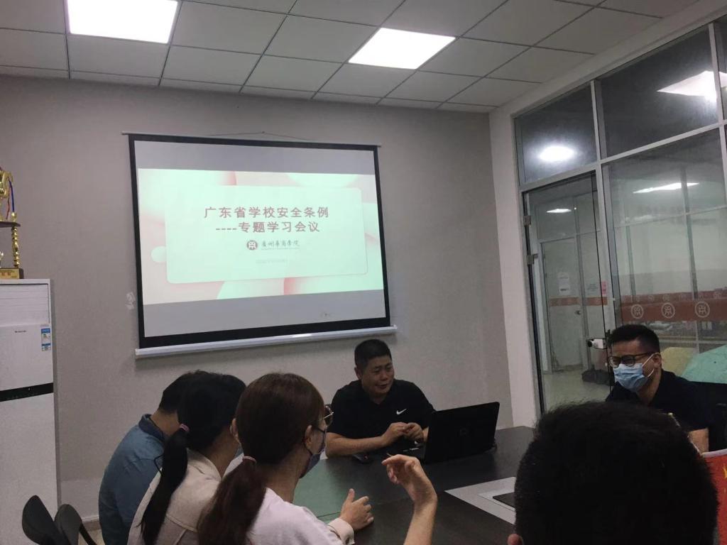 为贯彻落实广东省教育厅关于做好《广东省学校安全条例》宣传贯彻工作的通知,进一步加强学校校园安全工作,维护校园安全秩序,营造平安和谐的校园环境。根据校办要求,beat365中国官方网站于5月12日下午3点在会议室组织行政教辅人员代表,专任老师代表和学生代表共同学习《广东省学校安全条例》(以下简称《条例》)。学习会由beat365中国官方网站周书域副院长主持。