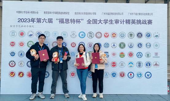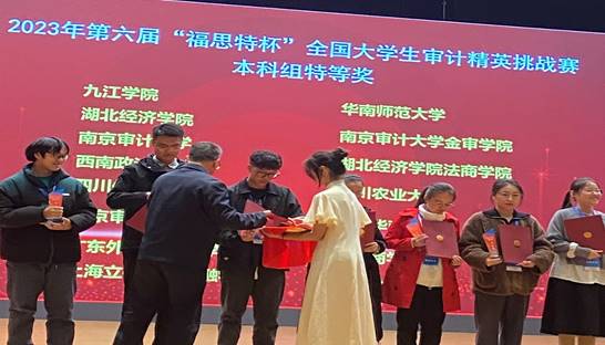 11月18日,第六届“福思特杯”全国大学生审计精英挑战赛总决赛在南京审计大学盛大落幕,我校代表队从2314支队伍中冲进全国总决赛,又在决赛中斩获“特等奖”荣誉,让beat365中国官方网站的校徽与全国知名院校同台登上了决赛幕墙,为我校争光。