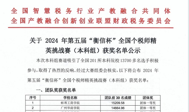 第五届“衡信杯”全国个税师精英挑战赛(本科组)于2024年4月28日至5月11日期间举行。我校取得了团队一等奖等多项好成绩!