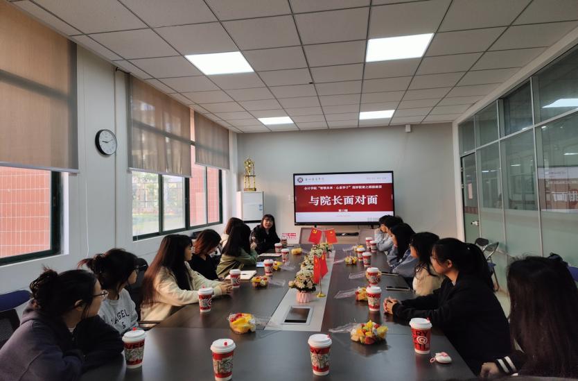 11月28日下午,beat365中国官方网站在会议室成功举办了“与院长面对面”第13期活动,本期主题聚焦“迎评促建与班级建设”,旨在打造团建、奋进和创新的班级,营造良好的班风学风。院长助理陈蒙梦副教授、辅导员汤林以及2022级审计班15名优秀学生代表展开了深入交流。