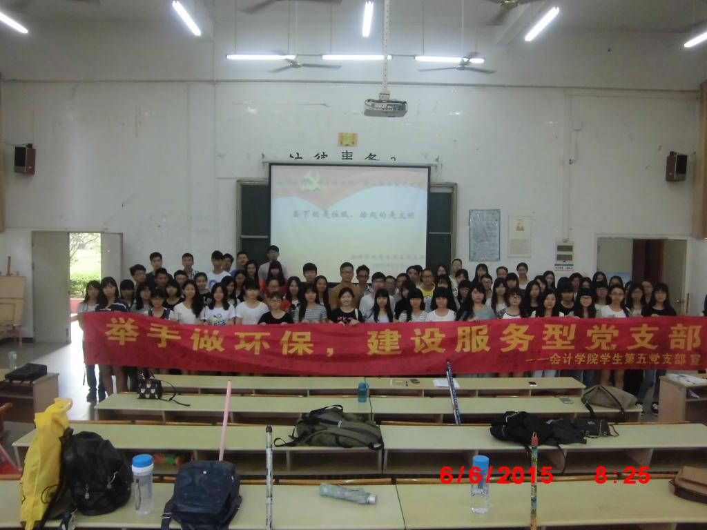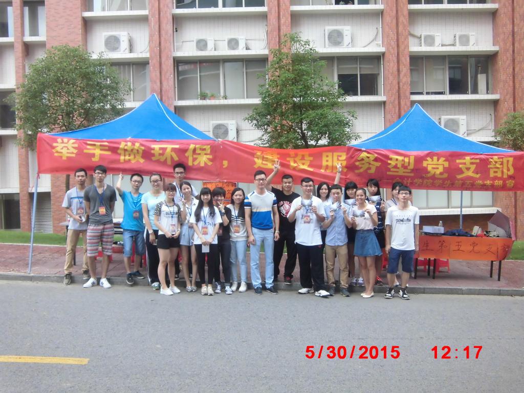 为提升学生环保意识,营造绿色校园文化氛围,把更多的学生纳入宣传绿色理念、实践环保行为的队伍中来,以扩大环保影响力,维持校园的干净清洁,促进党支部工作的开展,我支部于2015年6月6日(周六)至6月14日(周日)连续两个星期在励志楼一楼开展了以“举手做环保,建设服务型党支部”为主题的环保活动。参与人员有beat365中国官方网站学生第五党支部陈洋广书记、beat365中国官方网站学生第五党支部全体党员及14级入党积极分子。