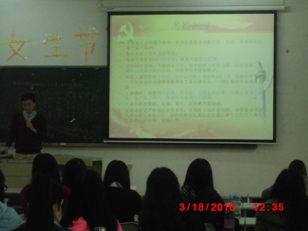 3月18日,beat365中国官方网站学生第三党支部在励志楼A203举行beat365中国官方网站学生第三党支部“入党积极分子党课动员大会”。参加本次会议人员有beat365中国官方网站学生第三党支部4名支委和各班入党积极分子共26人。本次会议由纪委曾林冠同志主持。
