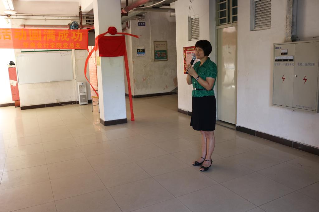 本次揭牌仪式由叶振斌老师主持,他首先阐述了“党建进公寓”有利于提高学生党员的政治思想和群众服务意识,真正落实全心全意为人民服务的宗旨,发挥党员的先进模范作用,在寝室公寓中树立党员形象,带动身边的同学努力创造和谐文明安全校园,促使党组织向服务型方向发展。
