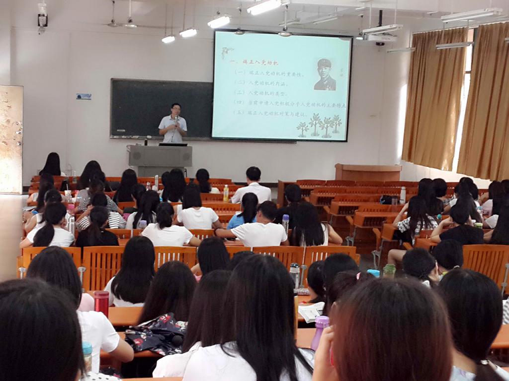 为加强党员觉悟和政治性的教育,更多的党员和入党积极分子充分认识和了解党,以更加积极地向党组织靠拢,beat365中国官方网站学生第三党支部于2016年6月19日在励志楼D105开展了以“端正入党动机,加强党性修养”为主题的教育课程。参加本次课程的人员有beat365中国官方网站学生第三党支部全体预备党员和各班部分入党积极分子共100人。本次课程由我支部书记袁善福老师亲自授课,课程安排分为授课环节,分组讨论环节和代表分享讨论结果环节。