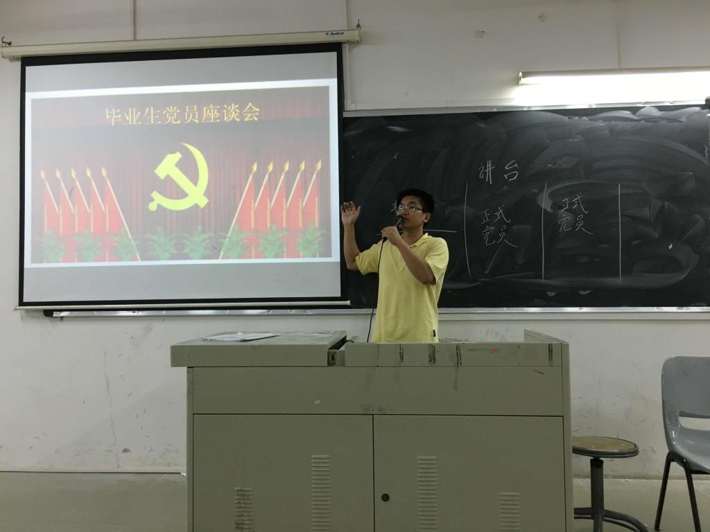 beat365中国官方网站学生第二党支部全体党员同志于2016年6月22日晚上十九点整在厚德楼C405举行毕业生座谈会,会议议题分别为:“两学一座”讨论会、党员组织关系转移办理手续、毕业生工作经验分享。为让即将毕业的党员同志们更好地引导学党章党规、学系列讲话,做合格党员,为了让他们更好地办理组织关系转移手续,为了让他们留下最美好的回忆,今后能更好的面对学习、生活以及社会,进而在毕业周之际举行了毕业生交流座谈会,此次座谈会由陈少明同志主持。