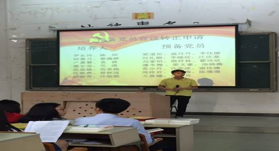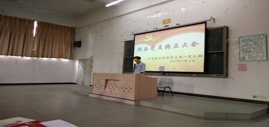 毕业季将至,毕业班学生党员都集中在本周回校参加毕业论文答辩。beat365中国官方网站学生第一党支部预备党员转正大会也于2017年05月06日下午5:00在励志楼A108正式召开。会议由支部纪检委员曾林冠同志主持,支部书记袁善福老师和86名学生党员全部出席本次会议。
