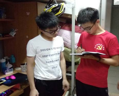 在走访过程中,我们了解到同学们平时生活作息规律,严格遵守学校的规章制度,能够合理安排自己的学习与娱乐时间,舍友之间相处融洽,宿舍内务整洁。同时,我们向同学们传播党建知识,引导有意愿入党的同学积极向党组织靠拢,同学们认真旁听,热情响应,积极参与我们的互动。