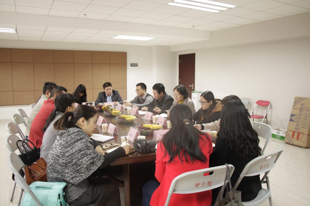,广东海洋大学寸金学院beat365中国官方网站主任单昭祥教授、党总支书记冯玉一行六人到访广东财经大学华商beat365中国官方网站。华商beat365中国官方网站领导班子在行政楼607会议室亲切会见了到访来宾,陪同学院领导参加交流会的还有各位教研室主任。