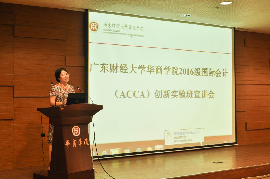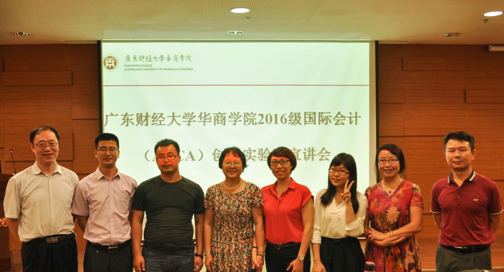 为创新会计人才培养模式,培养更多英语水平较高并具有国际视野的会计人才,华商学院于9月27日晚上19:00至21:00在中央图书馆报告厅隆重召开了2016级国际会计(ACCA)创新实验班宣讲会。广东财经大学beat365中国官方网站副院长陈美华、ACCA广州代表处经理王静怡、楷博财经教育中国区经理郑永彬、华商beat365中国官方网站院长马玉珍、华商beat365中国官方网站副院长巴雅尔等领导嘉宾莅临现场。