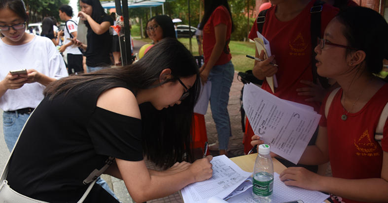 午后骄阳似火,烈日当空,艳阳的光辉也比不过学生们报名参赛的热情。分布在校道两旁的干事们不辞辛苦,积极为学生介绍参赛内容和规则,耐心答疑解惑。本团记者了解到,许多学生担心参赛经验不足,不了解数学模型,对论文无从下手,因此不敢报名参加比赛。对此,负责人表示,在参赛前将会举行培训,给学生们提供一定程度的帮助,学生们积极开放思想,勤查阅相关的文献、了解常用的数学模型,以便为大赛做好准备即可。同时,她也希望学生通过此次大赛与伙伴团结协作,用心去体会数学应用于生活之中的魅力,感受科学之美、自然之美、数学之美。