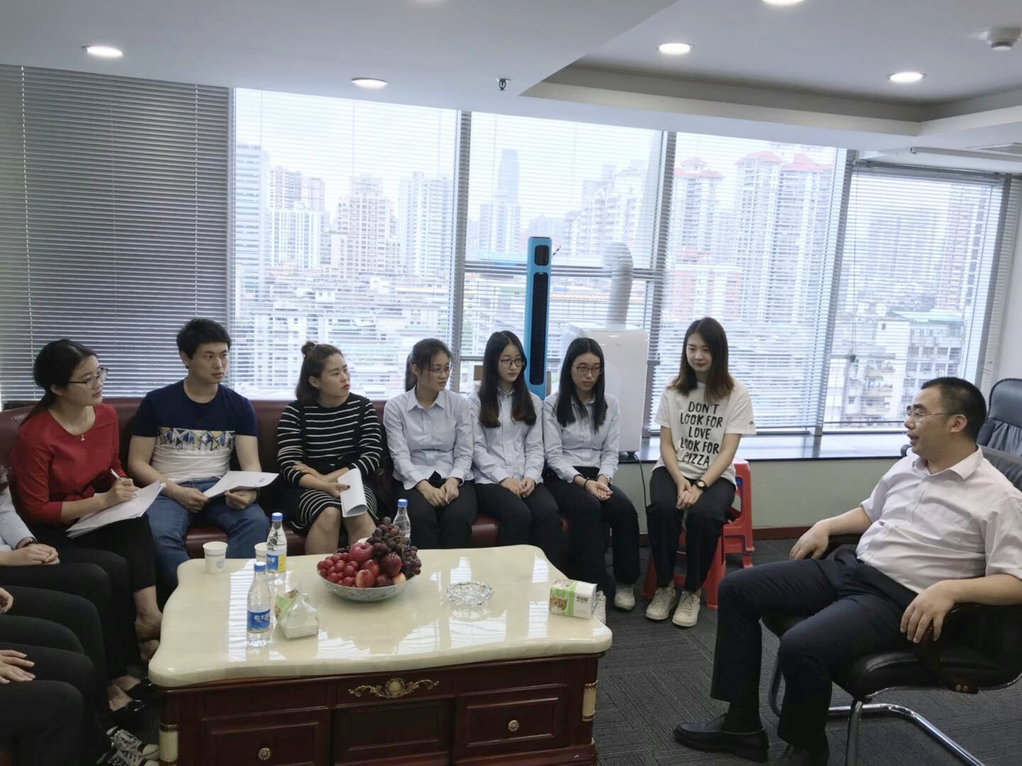 许娜副院长认真询问了实习生在工作、生活和学习各方面的情况。她表示会根据实习单位提出的建议,注重用人单位实际需求,完善专业人才培养计划,加强学生的理论和综合能力培养,提升学生数据分析的能力和计算机应用能力,为实习基地提供更多更优秀的毕业生参与事务所的发展中来。