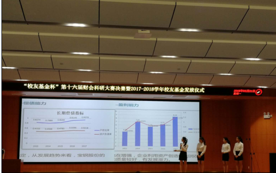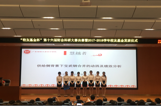 来自广东财经大学、广东金融学院、广东财经大学华商学院和中山大学南方学院四校共9支队伍参加决赛,决赛分为两个环节,论文展示和答辩环节。beat365参赛队伍“慧越者”以“供给侧背景下宝武钢合并的动因及绩效分析”为题对他们的研究课题进行了精彩展示。面对评委老师的犀利提问,华商选手们旁征博引,机智应答,获得好评。经过两个多小时的激烈角逐,beat365“慧越者”参赛队在大赛中表现突出,最终获得广东财经大学第十六届“财会杯”二等奖的好成绩。