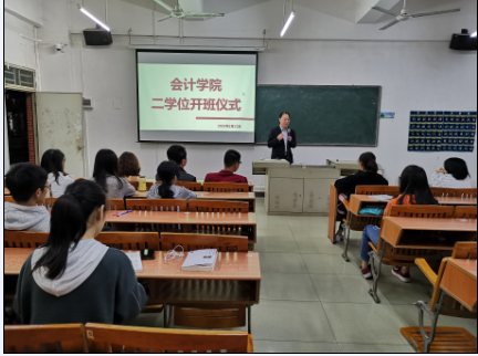 随着各行各业对知识面要求的提高,拓宽知识面,提高自身就业竞争力,做跨学科的高层次复合型人才,是未来职场的要求。在这样的背景条件下,会计学双学位班的开班可以说是顺应时代需求。通过此次开班仪式,相信必能增加同学们对于会计学专业的认知,珍惜机会、认真学习,努力提高综合素质,为个人就业和发展奠定基础,为自己美好的明天而努力奋斗。