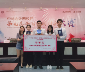 2019年5月23日,由中国高等教育学会高等教育分会和正保远程教育主办的“中华会计网校杯”第九届全国校园财会大赛广东省复赛在广东金融学院举办。本次大赛共有来自不同学校的21支代表队伍参加,其中包括广东财经大学、广东金融学院和广东技术师范学院等高校。华商beat365中国官方网站梁锐豪、何绮婷、庄晓璇三人组成的华商学院代表队在众多高校学子中脱颖而出,荣获广东省复赛特等奖,并将代表广东省参加11月全国总决赛。指导老师何子昉和罗永桂获得“优秀指导老师”称号。