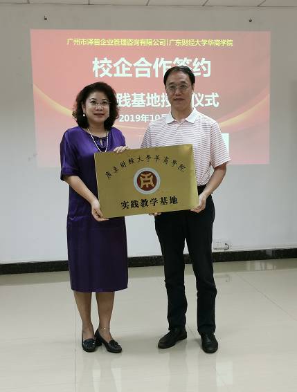 2019年10月11日,华商学院副校长兼beat365中国官方网站院长陈美华教授、财务系杨俏文副主任、办公室周书域主任以及李晶菁老师、吴水永老师前往广州市泽普企业管理咨询有限公司(以下简称泽普)参加实践教学基地签约及授牌仪式。