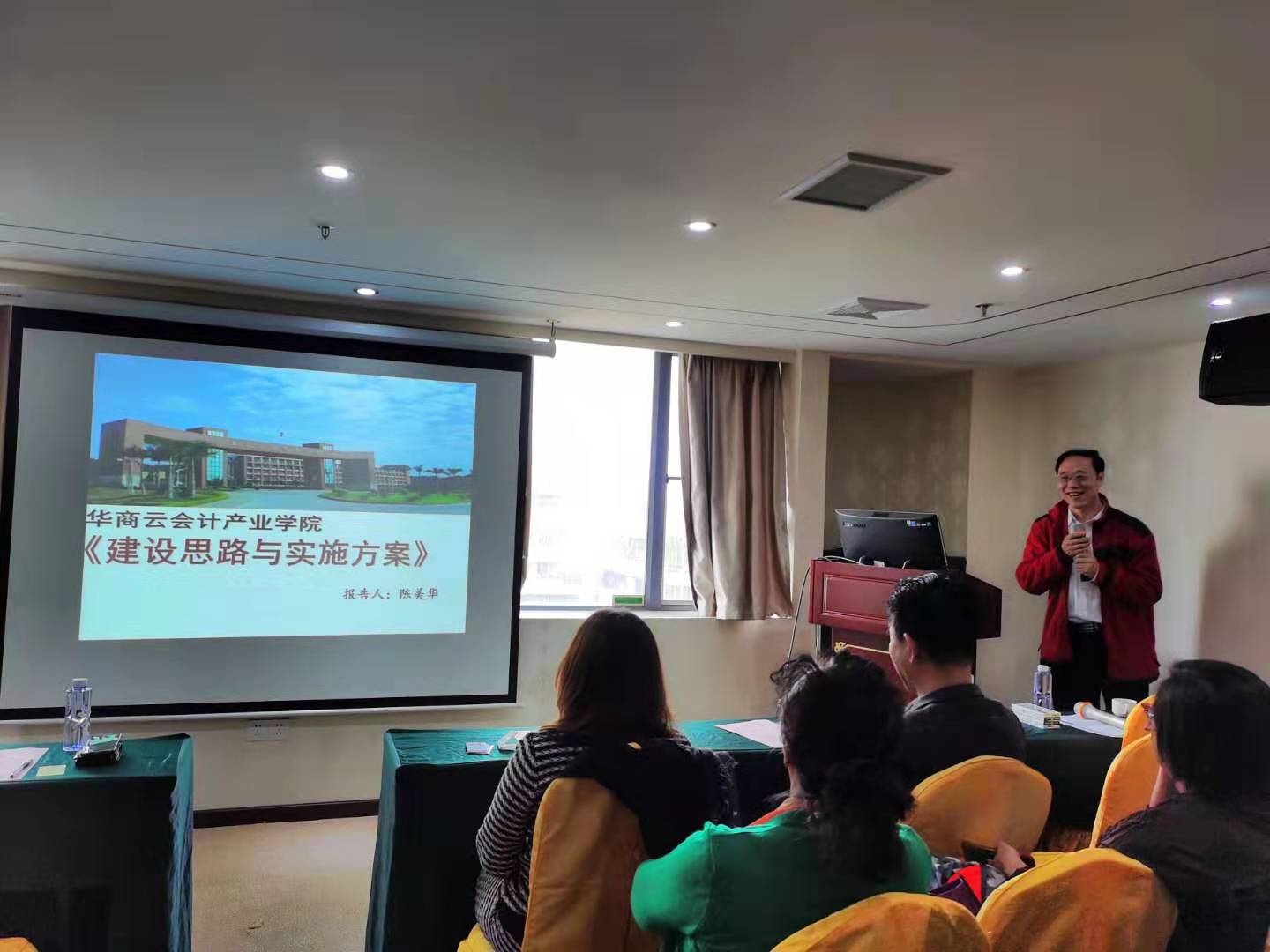 会上,陈美华院长向大家阐述了《华商云会计产业学院建设思路与实施方案》。他首先从斯坦福大学的启示为切入点,分析了应用型本科的缘起和实用主义教育观。接着,结合国务院《关于深化产教融合的若干意见》和广东省教育厅《关于推进本科高校产业学院建设的若干意见》,强调了华商beat365中国官方网站在广东率先建立创业学院的重要性。希望通过产业学院建设,构建产学全方位、全过程、全过程深融合的协同育人长效机制,促进人才培养供需双方紧密对接,改革高校专业结构,实现校企之间信息、人才、技术与物质资源共享,形成高等教育应用型人才培养的“广东模式”。