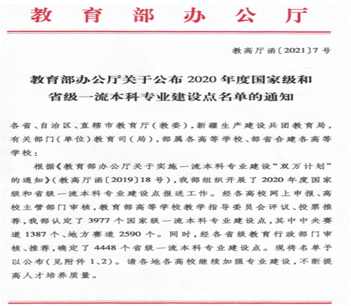 近日,教育部办公厅公布了2020年度国家级一流本科专业建设点名单(教高厅函〔2021〕7号),beat365中国官方网站会计学专业入选国家级一流本科专业建设点,这是继beat365会计学科2017年入选省特色重点学科,会计学专业和财务管理专业分别于2019年和2020年入选省一流专业建设点之后,在专业建设发展方面取得的又一突破性成果,标志着beat365中国官方网站在专业建设发展达到新的水平。