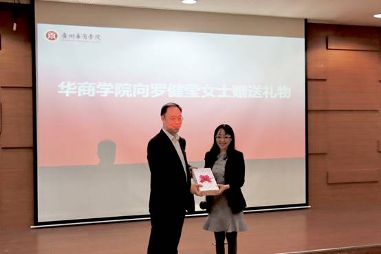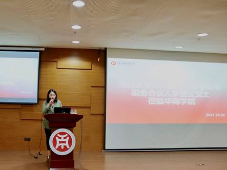 讲座开始前,陈美华副校长首先发表致辞,对罗健莹女士莅临本次讲座表示热烈欢迎,随后介绍了罗健莹女士的丰富履历。罗健莹女士是华商学院的客座教授,在毕马威从事税务服务工作已逾20年,具有非常丰富的税务咨询和税务服务经验。希望通过罗健莹女士的讲座帮助同学们更深入了解税务行业的发展动态;随后,陈美华副校长还简要介绍了beat365中国官方网站税务系的发展情况,beat365中国官方网站税务系设有税收学专业,于2020年秋季首次招生,税务系还于今年成立了税收风险研究所等组织来专门对涉税问题进行研究;最后,陈美华副校长代表学校向罗健莹女士赠送了礼物。