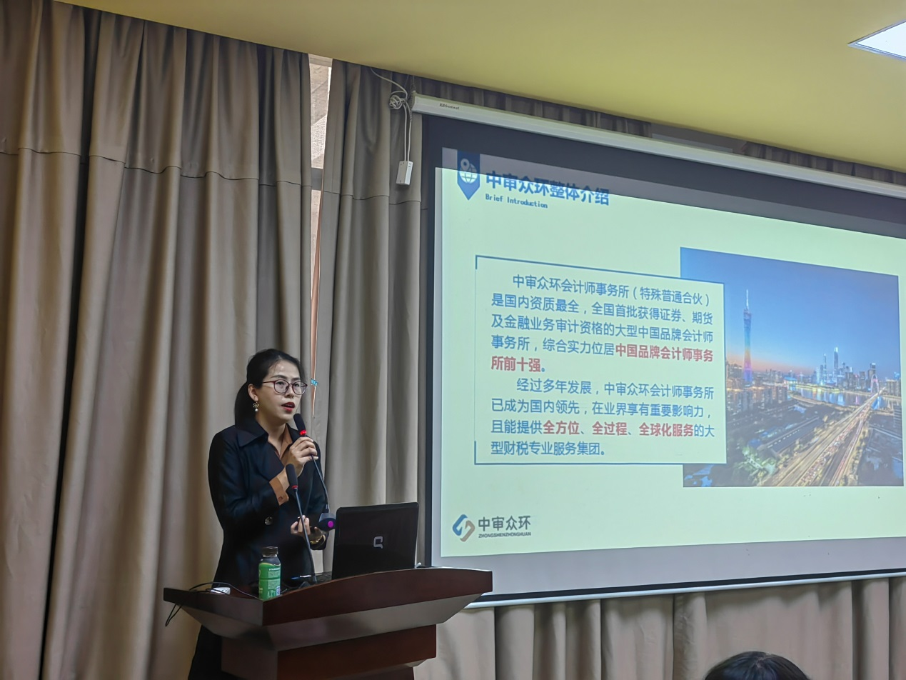 招聘前,中审众环进行了宣讲,王兵副所长从事务所发展历程、业务类型、客户特点、人员需求、工作内容、发展前景及工资待遇等方面进行了详细的介绍。王所提到,中审众环是首批大型的事务所之一,在全国拥有三十多家分支机构,其中广东分所是华南区域最大的分支机构之一。王所着重向同学们介绍了中审众环的工作环境及职业发展前景,强调中审众环重视员工培训及员工福利,是一支真正符合中国国情,并具有行业领先优势的人才团队。