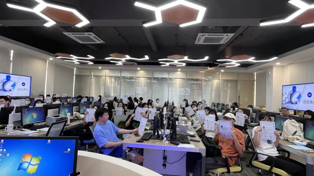在宣读先进表彰的评选规则与标准后,由企业领导及校方代表分别为优秀学生们颁发了“会计匠才奖”“记账之星”“税务之星”“装订小能手”“最佳团队奖”“明日之星”等表彰证书,随后颁发了融智•正保财务云共享中心2022年度实训结业证书。