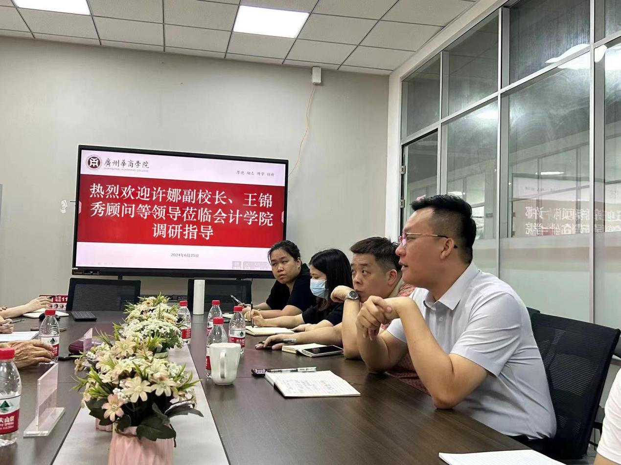 为了解学院学生工作情况,落实学校“十大工程”,推动学生工作高质量发展,2024年6月25日下午,许娜副校长、王锦秀顾问、学生处副处长马卉芳深入beat365中国官方网站开展调研工作。beat365中国官方网站党委副书记兼副院长陈洋广,学工办副主任杨烨瀚,各年级主任以及广州校区全体辅导员参加本次调研活动。本次调研交流会在beat365中国官方网站会议室举行,由陈洋广副院长主持。
