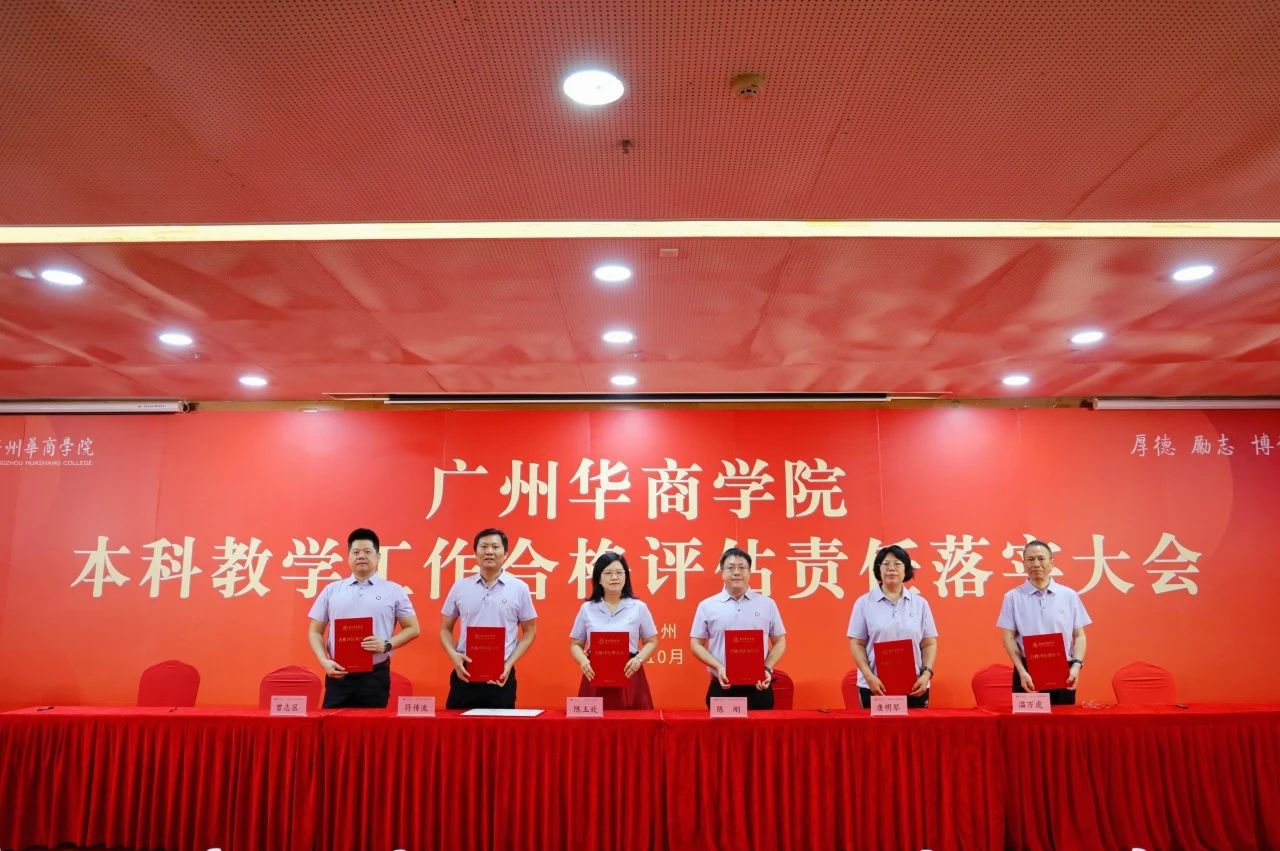 为进一步细化合格评估的标准和要求,有序推进我校本科教学工作合格评估,落实大会上,廖榕就董事长与全体校领导、党委书记陈玉欢与各二级学院及职能部门负责人分别签署本科教学工作合格评估责任书。全体教职员工表示将以满腔的热情和高度的责任心投身到迎评促建工作中,以最佳状态、最优成绩打赢本科教学工作合格评估攻坚战。