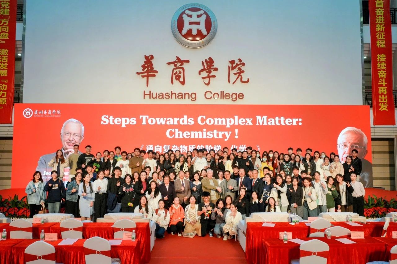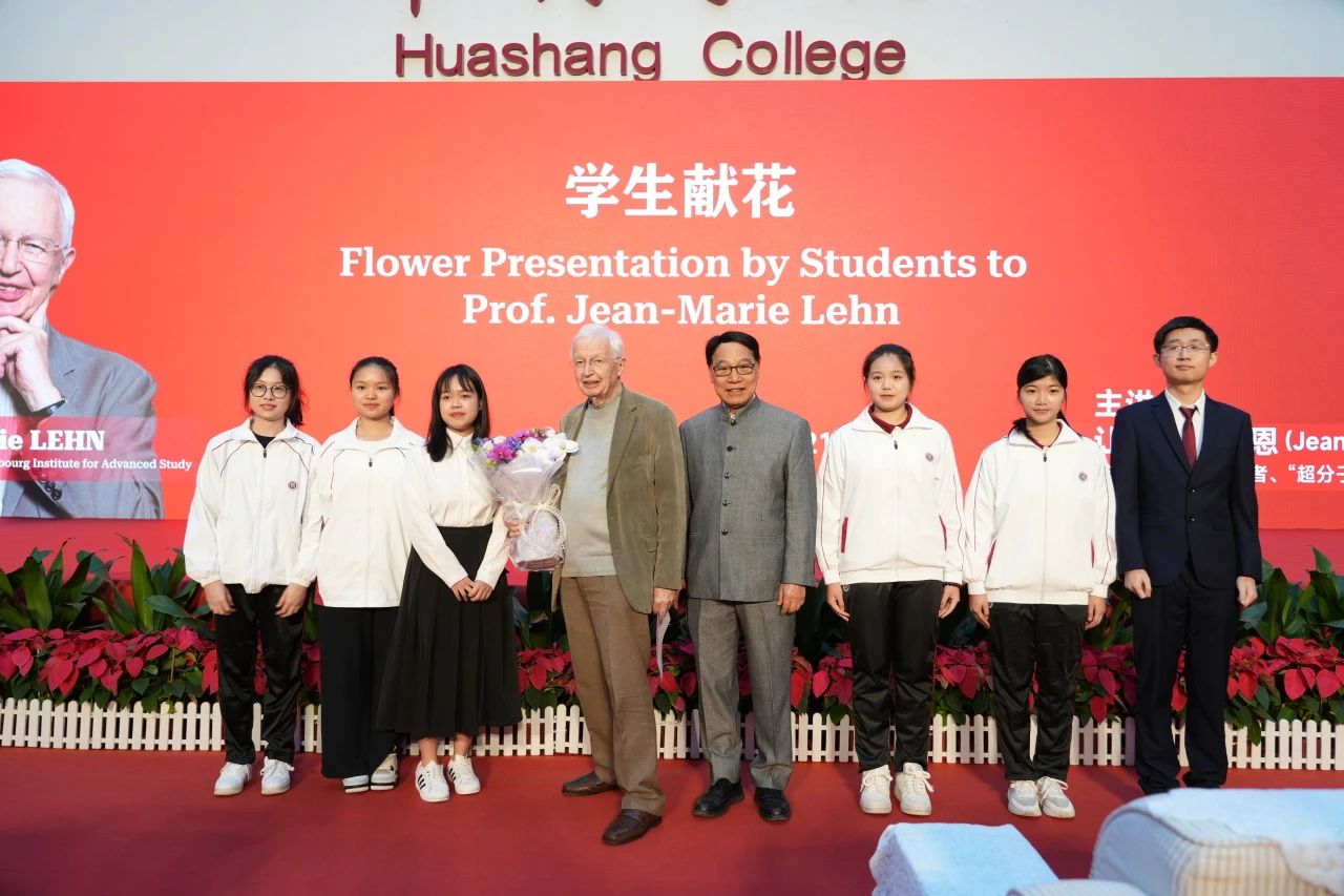 11月21日,诺贝尔化学奖获得者、超分子化学奠基人之一、法国科学院院士、中国科学院外籍院士、美国国家科学院外籍院士、学校荣誉校长Jean-Marie Lehn教授时隔五年再访华商,并为华商师生作《通向复杂物质的阶梯:化学!》专题讲座。beat365中国官方网站校长陈新滋院士、党委书记陈玉欢、副校长吕峻闽,校长助理及各职能部门负责人、各二级学院负责人参加本场讲座。本场讲座采取“线上+线下”的方式,现场600多名师生代表,线上两个平台共吸引2万多名受众共同聆听大咖的精彩讲座。讲座由校长陈新滋院士主持。