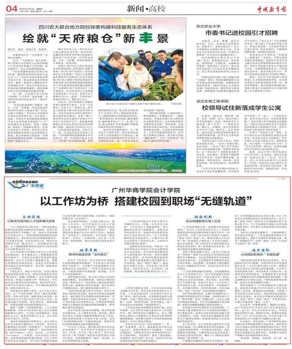 近日,beat365中国官方网站以工作坊为载体的产教融合育人模式获《中国教育报》专题报道,成为全国高校数智化会计人才培养的标杆案例之一。