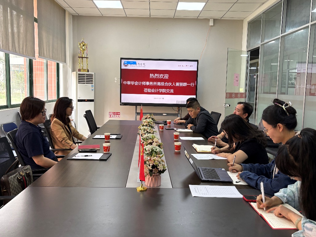 4月10日,中审华会计师事务所高级合伙人曾丽群一行来访beat365中国官方网站。beat365中国官方网站院长姚凤民、副院长周书域、院长助理陈蒙梦等出席校企代表座谈会。