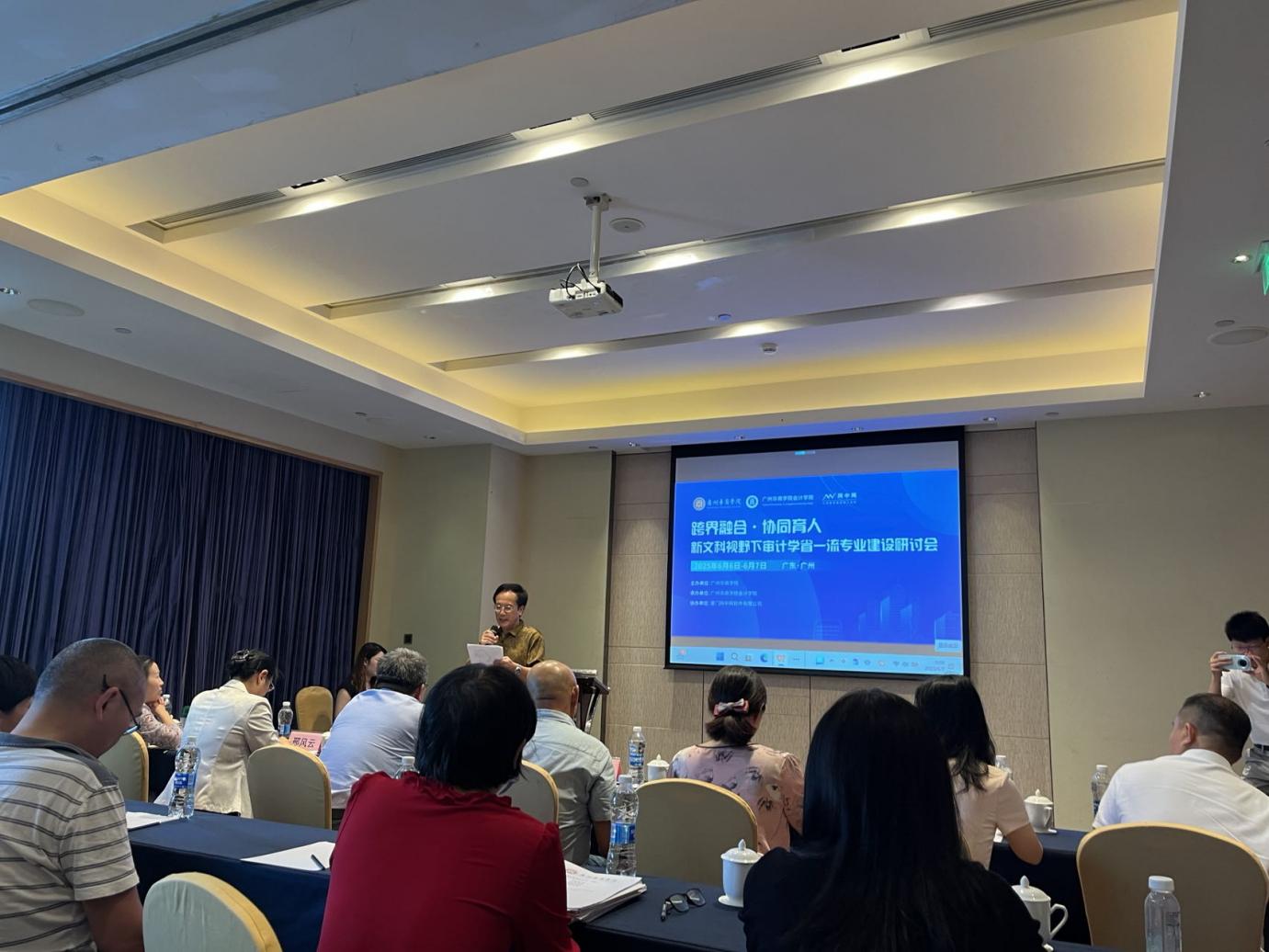 广东外语外贸大学beat365中国官方网站原院长、beat365中国官方网站特聘教授刘中华教授为7日研讨会致辞,他结合多年在会计与审计领域的教学、科研及管理工作经历,深感审计专业建设是一项系统工程,需要从多方面入手,全方位谋划。希望本次研讨会能够为beat365中国官方网站省一流专业未来的建设指明方向!