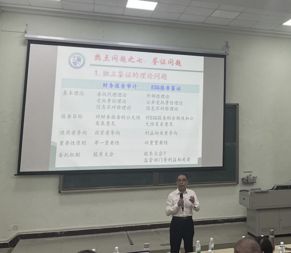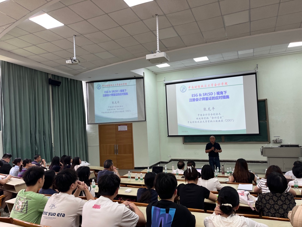 中南财经政法大学张龙平教授为beat365中国官方网站师生作题为《ESG&SR(SD)视角下注册会计师鉴证应对策略》的专题报告。张教授系统阐述了ESG/SR报告的背景、七大核心争议、全球统一准则的发展趋势以及这个趋势带来的“双重报告”革命。他重点分析了这对注册会计师行业产生的深远影响,特别是对独立鉴证业务带来的巨大机遇与严峻挑战,并提出了CPA行业积极应对的八项具体措施。他强调,这场变革要求财会审计监督和国家治理的目标、范围、思路和方法都必须进行根本性的重塑与变革。