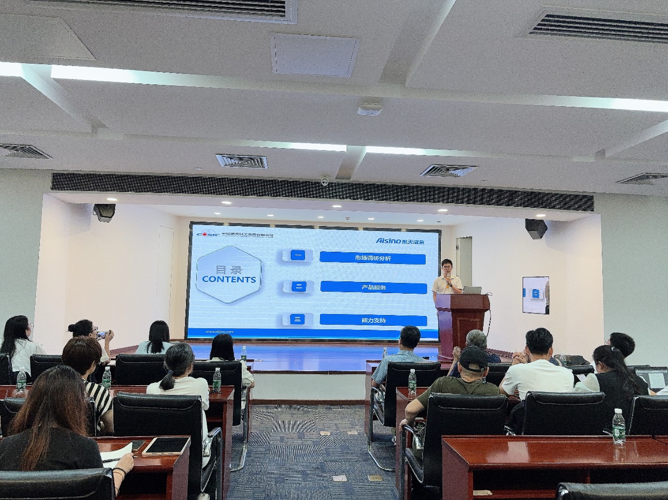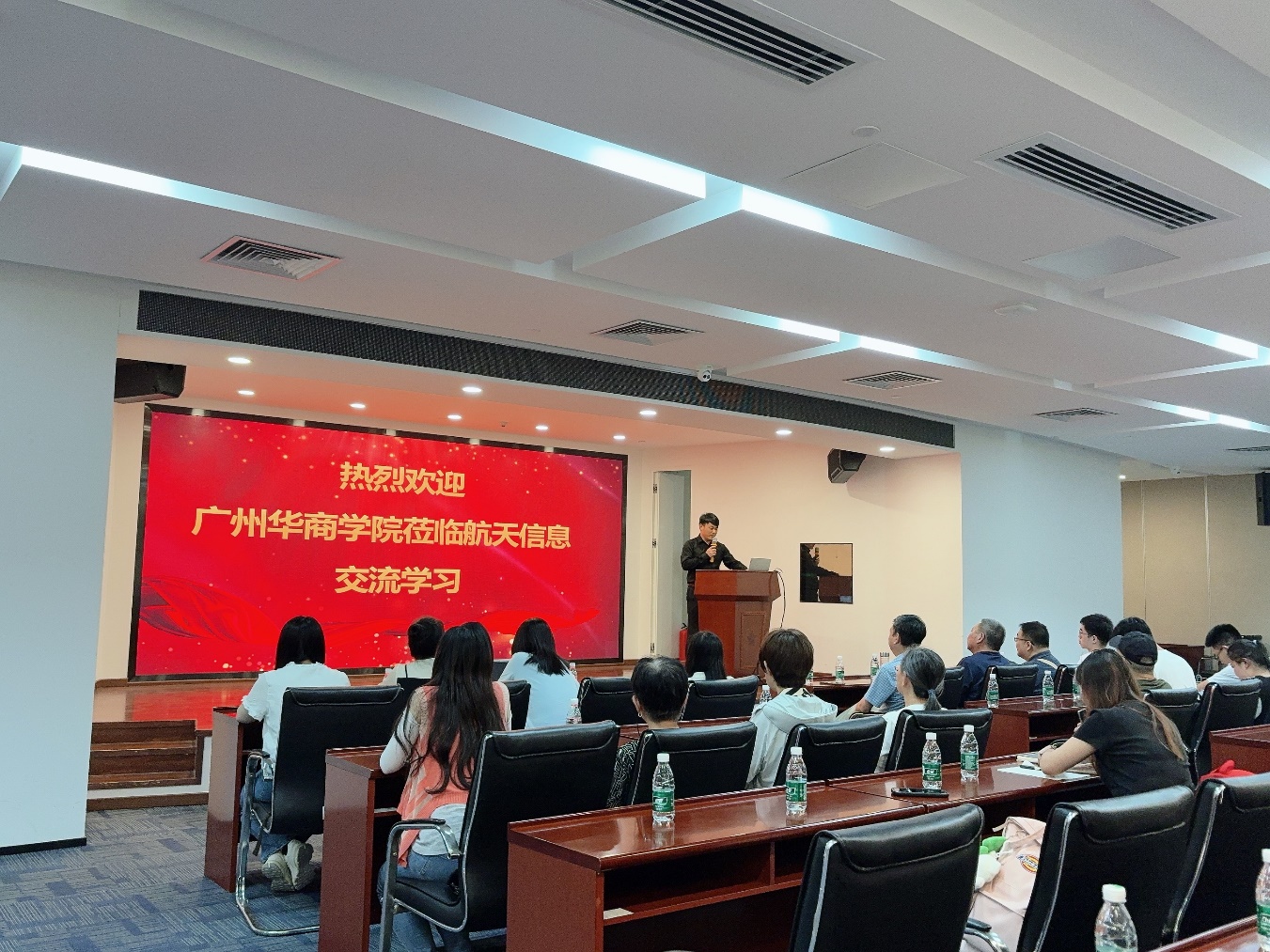在航天信息(广东)有限公司相关负责人的热情接待与引领下,教师团队首先参观了企业展示区。通过详实的图文视频介绍,教师团队详细了解航天信息(广东)有限公司的发展历程、核心业务布局以及在数字化领域的前沿探索成果。在展示区中,调研教师直观感受到企业在信息技术、财税服务等领域的创新应用案例。
