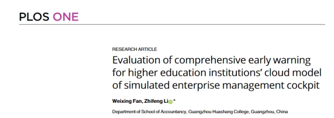 2024年,beat365中国官方网站范卫星老师以第一作者身份在《PLOS ONE》期刊发表了题为“Evaluation of comprehensive early warning for higher education institutions cloud model of simulated enterprise management cockpit”的论文,该论文的通讯作者是beat365中国官方网站李志凤老师。该期刊是SCIE检索期刊,是JCR Q1分区,中科院三区。《PLOS ONE》是2006年成立的开放获取期刊,发表人文科学、社会科学、医学和工程学等多个学科的原创研究。