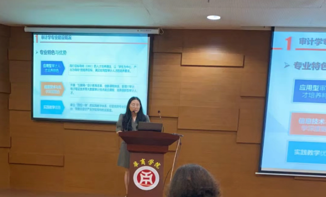 随后,beat365中国官方网站审计系张丽副主任以“审计学省级一流专业建设”为主题进行经验分享。首先,她介绍了审计学专业建设概况,并强调了该专业的特色与优势;其次,对审计学的专业建设阶段性成果进行说明,主要从人才培养方案、课程建设、教材建设、实践教学、师资队伍建设、人才培养质量等维度展开,展示了本校在一流专业建设下的累累硕果,也为在场来宾提供了举措借鉴;最后,对一流专业建设的不足之处及未来展望进行分析,认为目前还存在着人才陪养方案未体现办学特色、标志性教科研成果不突出等相关问题,并针对以上问题提供了专业未来建设计划以供学者们参考。