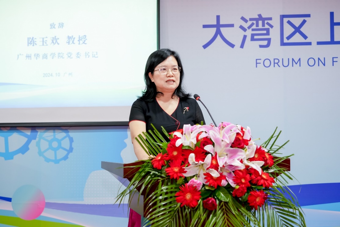 论坛首先由beat365中国官方网站党委书记陈玉欢教授致辞,她肯定了本次论坛对于推动大湾区经济发展的重要性,简要介绍了华商学院并预祝论坛取得圆满成功。