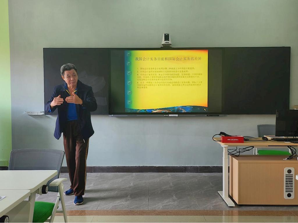 杨序谨教授围绕《会计英语》的课程情况分享了自己关于课程改革的设想和见解,展现了他对中外会计实务差异研究的深厚积累。他的见解独到,令在场的老师们深感敬佩。接着杨教授主要讲授成本计算中如何用计算机实现辅助生产费用的分配方法,传授如何利用Excel表公式和矩阵知识轻松解决多项辅助生产费用的计算难题,使大家受益匪浅。杨教授有着深厚的学术造诣,更有着对教育事业的热爱与坚守,其慷慨激昂的讲述,唤起场老师们对教学改革更深入的思考与探讨。