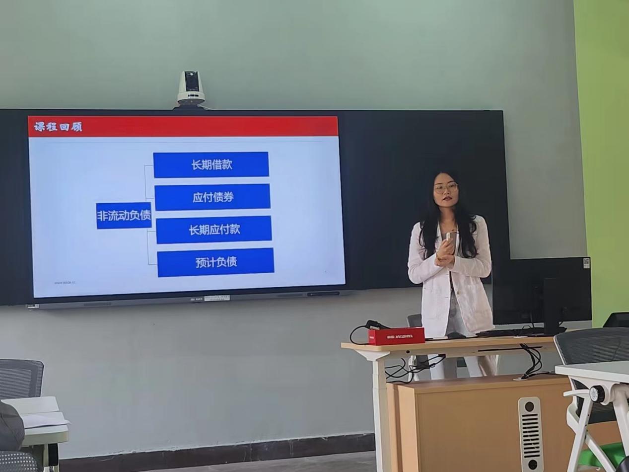 张含笑老师先聚焦《中级财务会计(下)》课程进行说课,从课程总体分析、学情分析及教学设计、教学方法及策略、教学过程与反思等四个方面展开,并选取“非流动负债”中的“预计负债”知识点进行讲授,她通过案例引导互动的教学方法模拟课堂讲授情景,以细致入微的风格和清晰的思路向大家娓娓道来如何进行相关概念的辨析和账务处理方法的学习,专业规范的教学剖析,令在场老师获得了启示与收获。